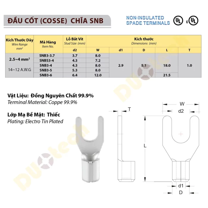 📧 Email:. info@duotech.vn đầu cosse cos chỉa chữ y snb3 2.5mm 3mm 3.5m 4mm