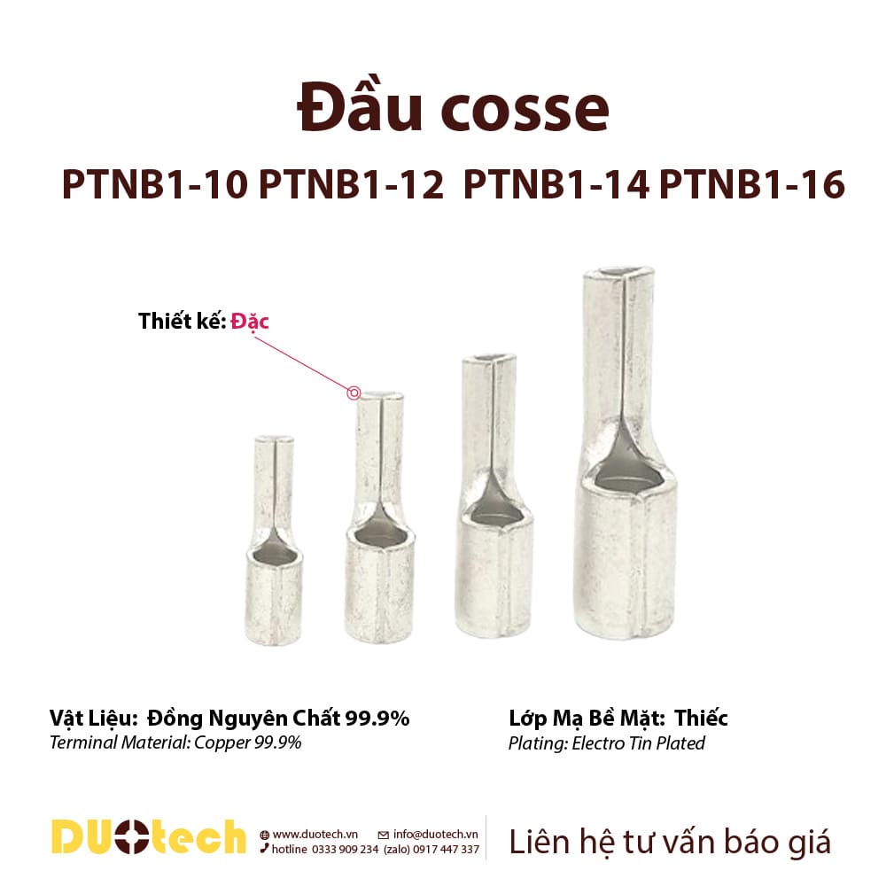 Đầu cosse PTNB (tên gọi khác: đầu cos, cốt, cose, coss, terminals, cable Lugs) dùng để bấm nối dây cáp điện, loại trần – không có bọc nhựa (Non-Insulated Terminals), Cốt cos PTNB thuộc kiểu pin đặc trần dạng lưỡi tương tự cos mỏ vịt.