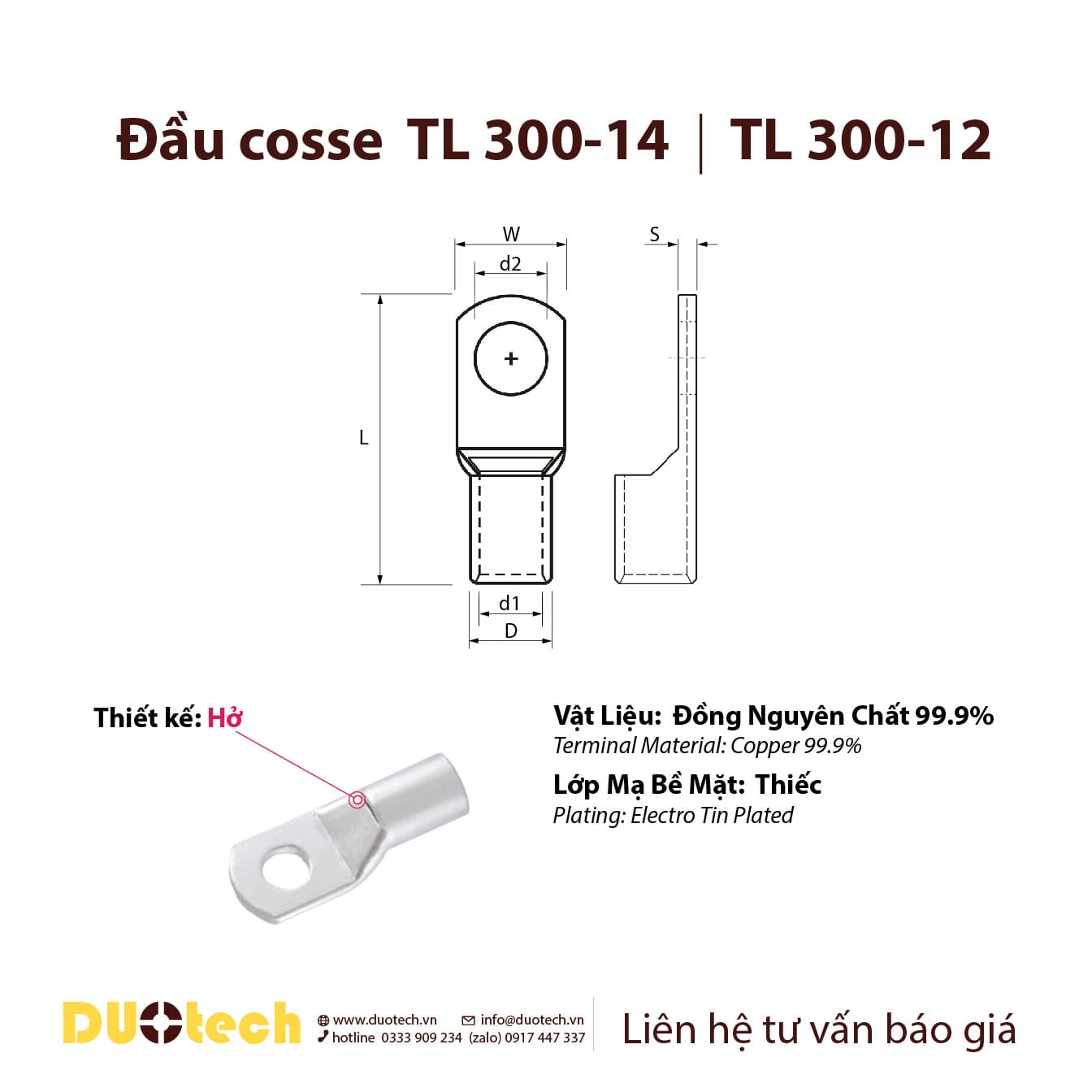 Đầu cosse TL 300-10 300-12 300-14 300-16 300-18 300-20, cos cốt đồng bấm nối dây cáp điện 300mm2