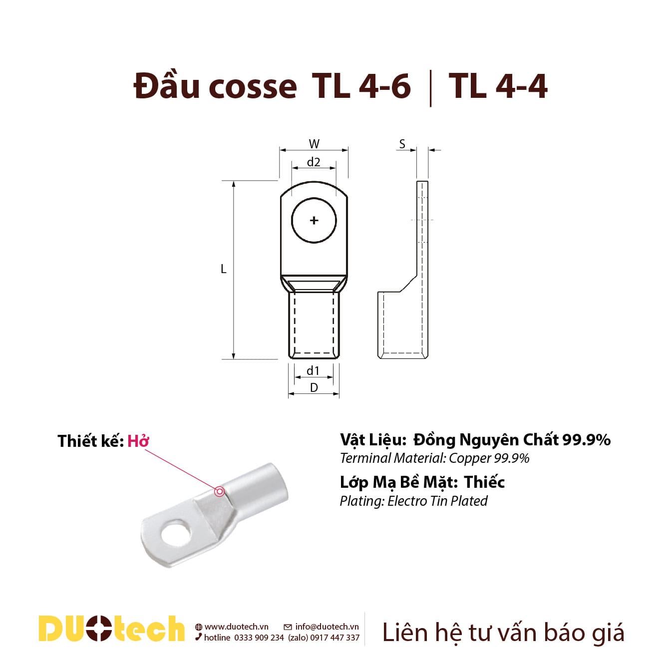 Đầu cosse TL 4-4 4-5 4-6 cos cốt vật liệu Đồng, mạ Thiếc trắng, dùng bấm nối dây cáp điện tiết diện 4mm2