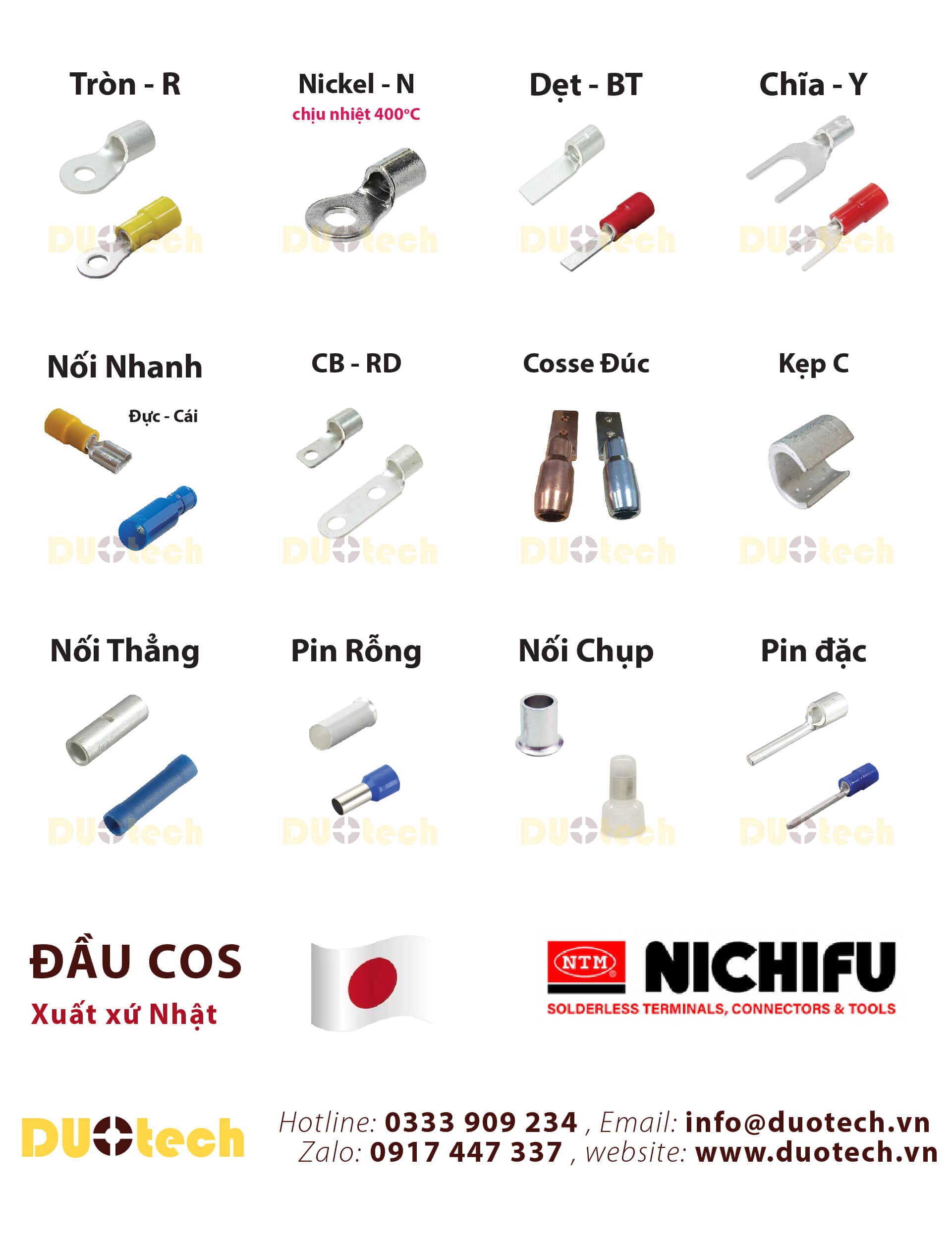 Liên hệ Công ty DUOTECH là đơn vị phân phối, nhà cung ứng cung cấp sản phẩm Đầu cos Nichifu (cosse, cốt, cose chính hãng thương hiệu Nichifu) bấm nối dây cáp điện chất lượng hàng đầu bao gồm các dòng sản phẩm: