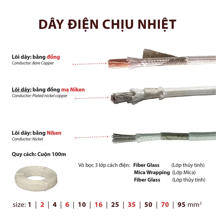 - tiết diện 35mm 2 1000 độ C lõi dây 100% niken