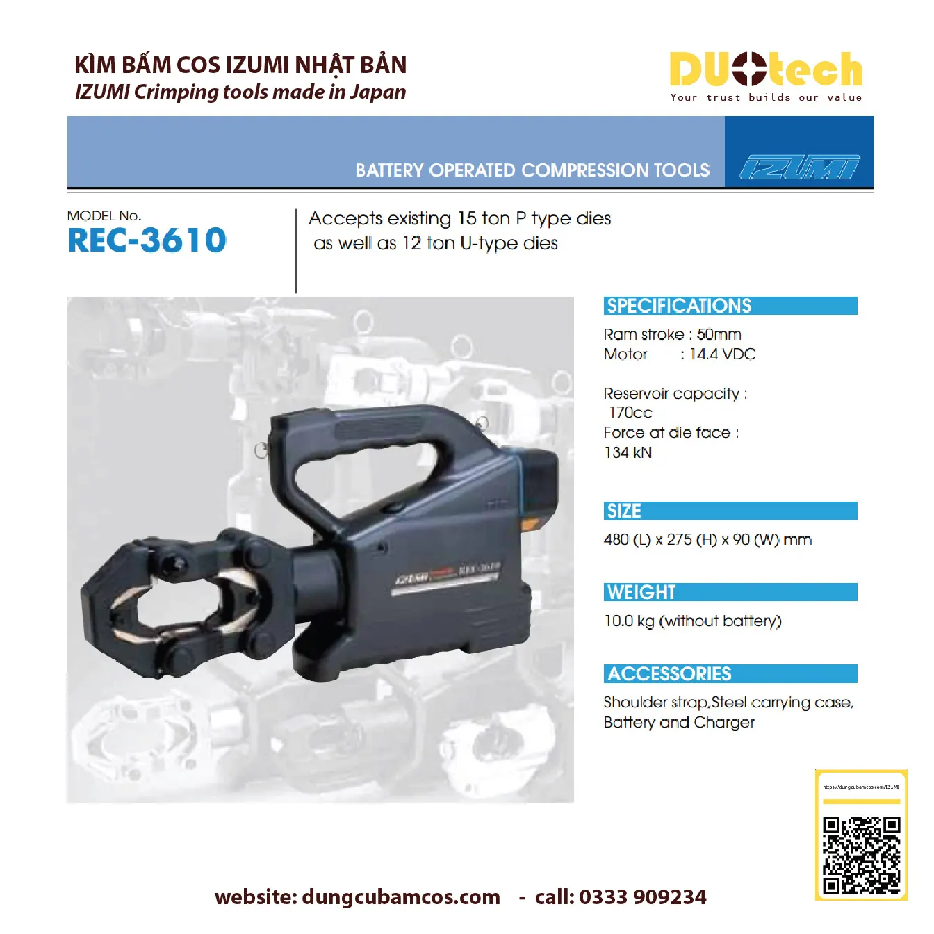Phụ kiện Máy ép cos thủy lực dùng pin IZUMI REC-3610 :