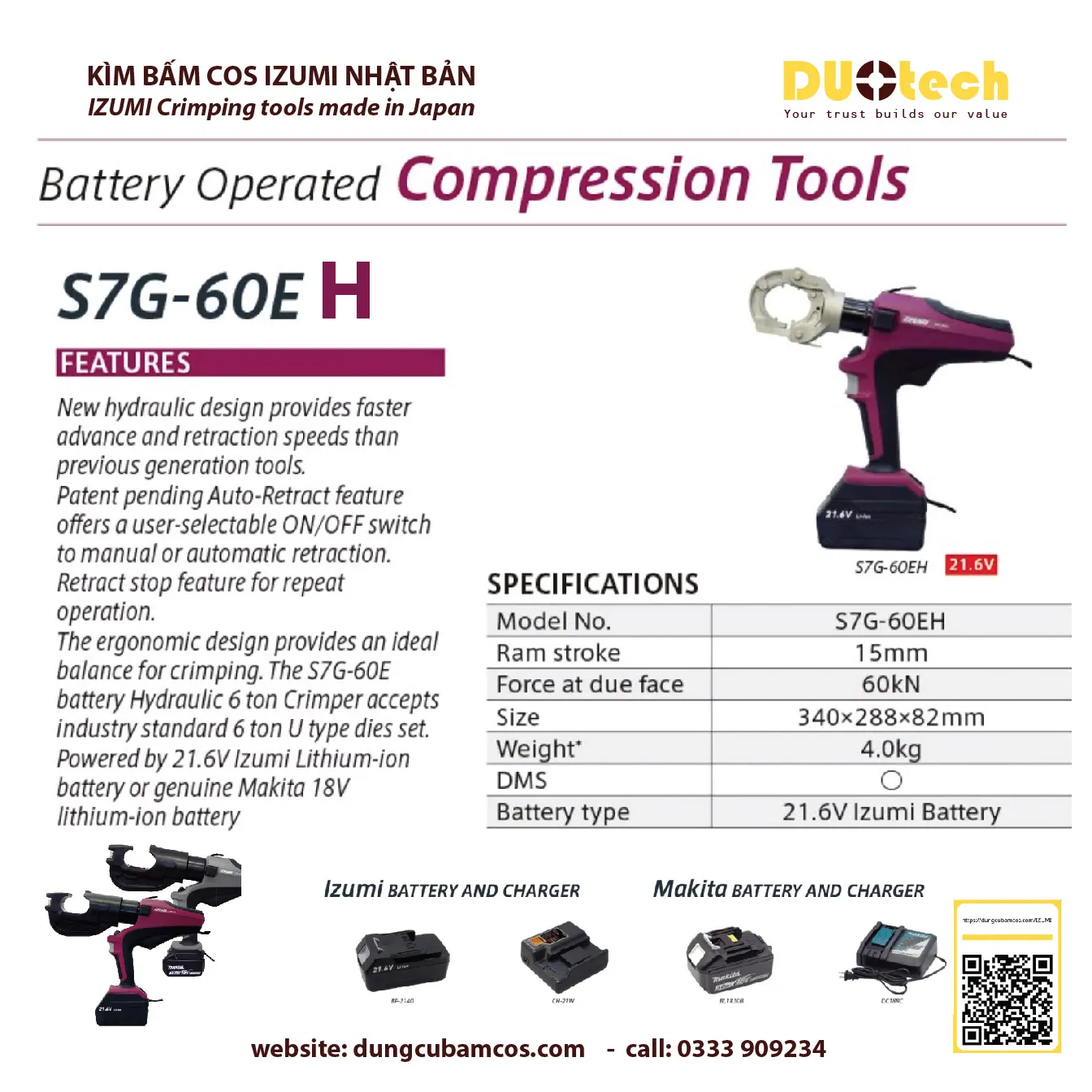 Liên hệ DUOTECH - Đại lý cung cấp sản phẩm kìm bấm, máy ép cos thủy lực IZUMI